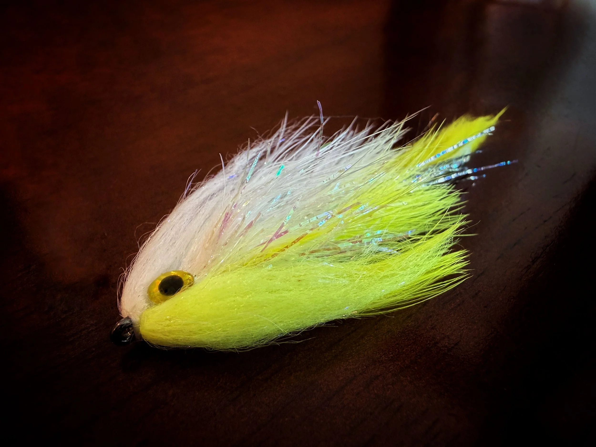 The Jackrabbit is a single-hook baitfish imitator for smallmouth and largemouth bass. Its tied on the Ahrex XO774 Universal Curve Hook in sizes 1 and 2. This unweighted fly is best fished on intermediate and sinking lines.